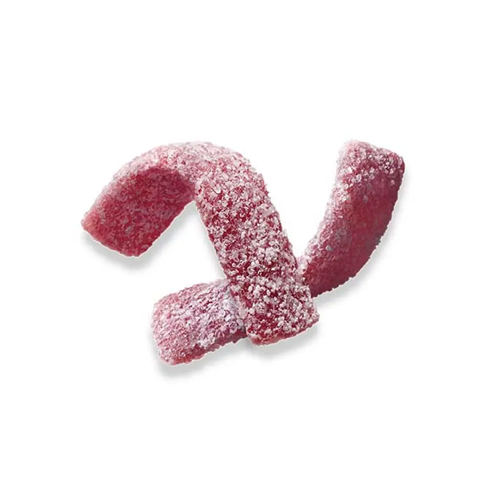 A Bourbon Fettuccine Kékszőlős Gumicukor egyik legérdekesebb tulajdonsága a különleges, enyhén rugalmas állag, amely kellemesen rágható, mégsem túl kemény. A vékony, fettuccine tésztára emlékeztető csíkok szórakoztatóvá teszik az édesség fogyasztását.