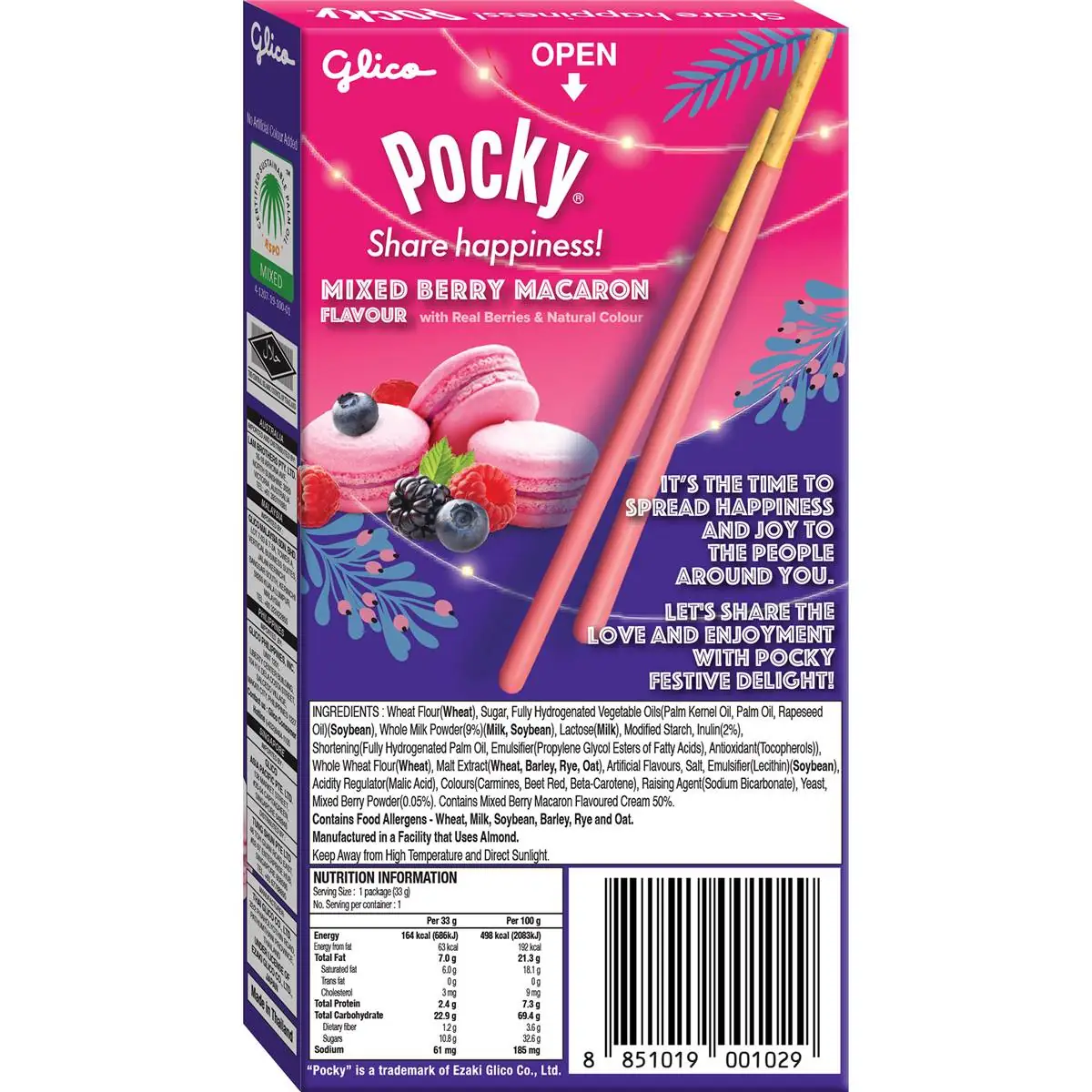 Glico Pocky Festive Delight Erdeigyümölcsös Macaronos Pocky összetevők: