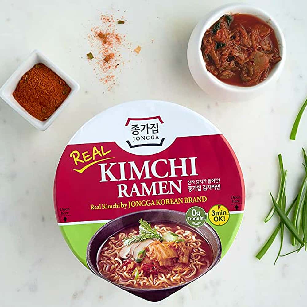 Levespor: kimchi por (kukoricaszirup, só, szardínia kivonat, tejsav, Dl-alanin, gumiarábikum, mesterséges természetes aromák, paprika színezéshez), só, fűszerpor (maltodextrin, só, hagymapor, élesztőkivonat, mesterséges aroma , hidrolizált szójafehérje, cukor, fehér bors), cukor, mononátrium-glutamát, chili por, szójaszósz por (szójabab, búza, só, maltodextrin), szárított hagymapehely, nem tejszín (glükóz, hidrogénezett pálmaolaj, nátrium-kazeinát* tejszármazék), fokhagymapor, fekete borspor, paprikapor színező, szilícium-dioxid, hagymapor, maltodextrin, citromsav, dinátrium-inozinát, dinátrium-guanilát, karamell színezék, tokoferolok)