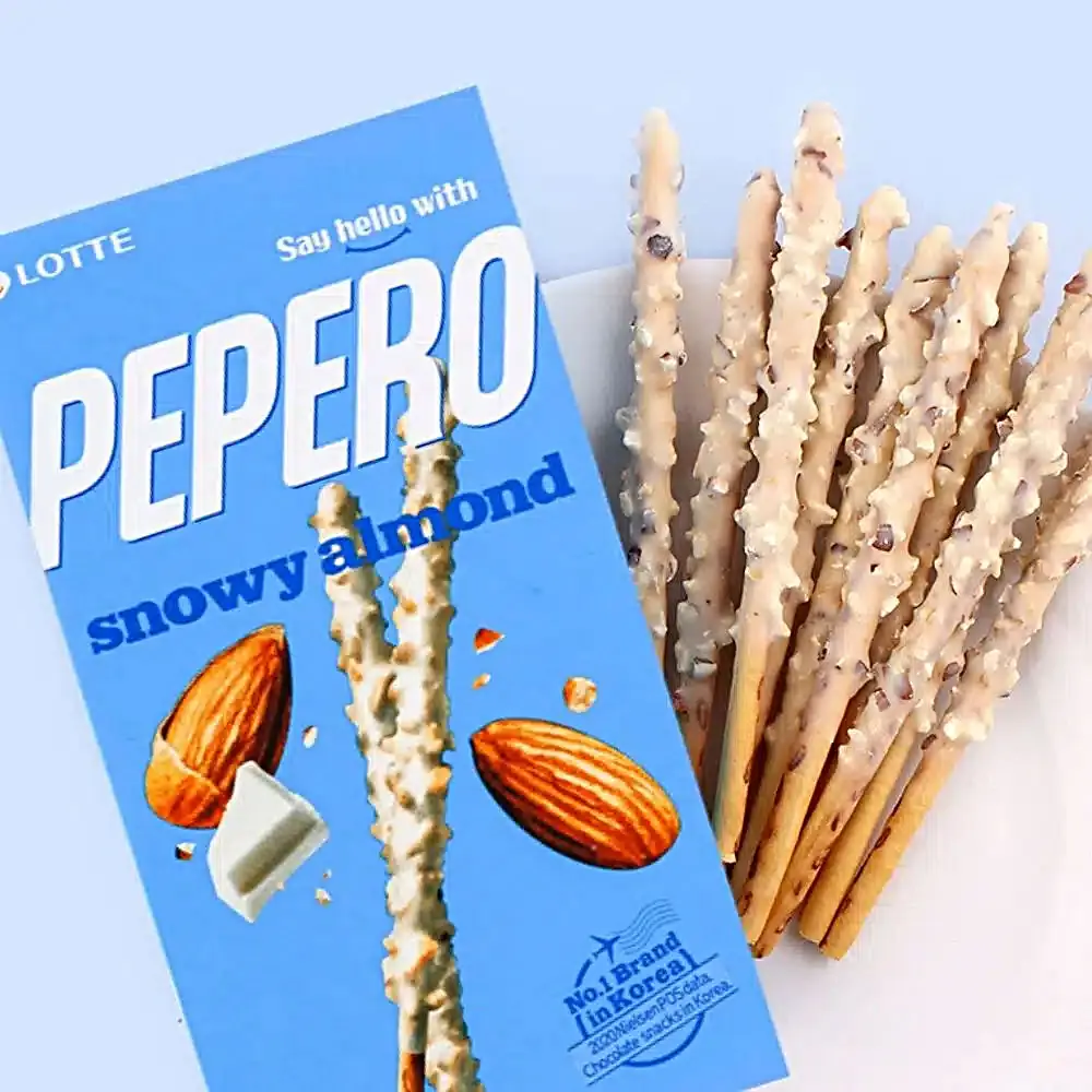 A Lotte Pepero Snowy Mandulás Ropi 32g bármikor nagyszerű választás, amikor egy kis ízes kényeztetésre vágysz: