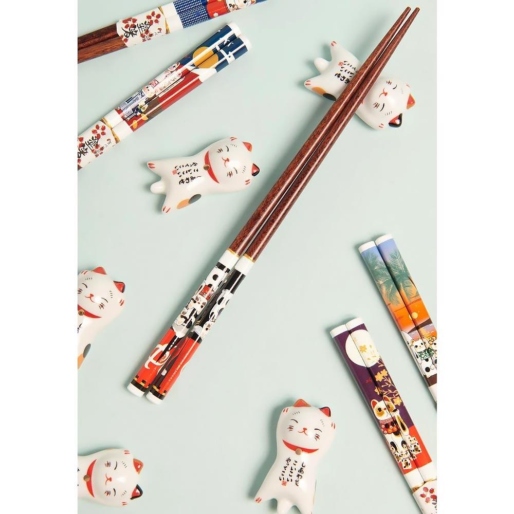 Hashioki Maneki Neko Szerencse Macska pálcika tartó szett