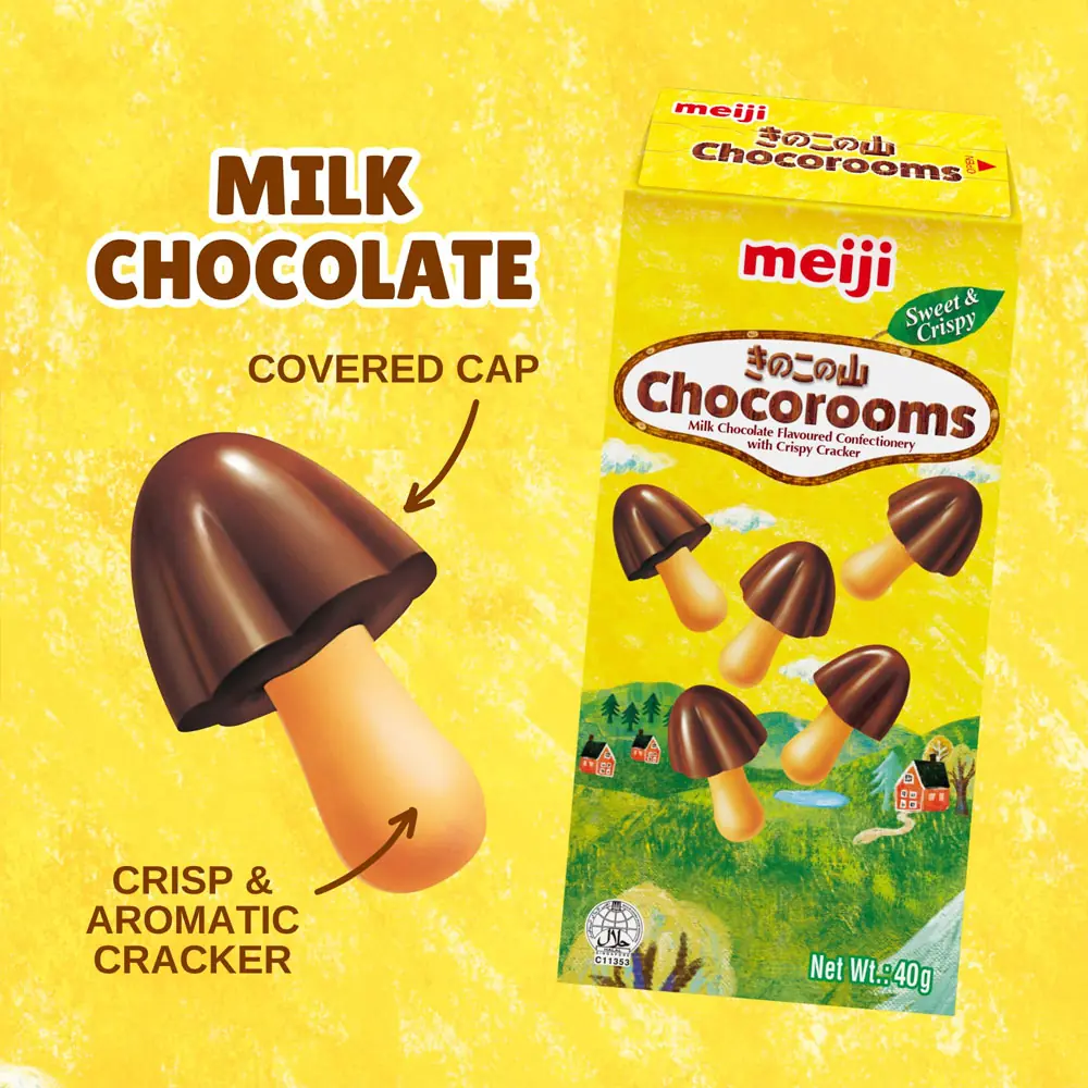 MEIJI Chocorooms Csokoládés Gomba Kekszek összetevők: