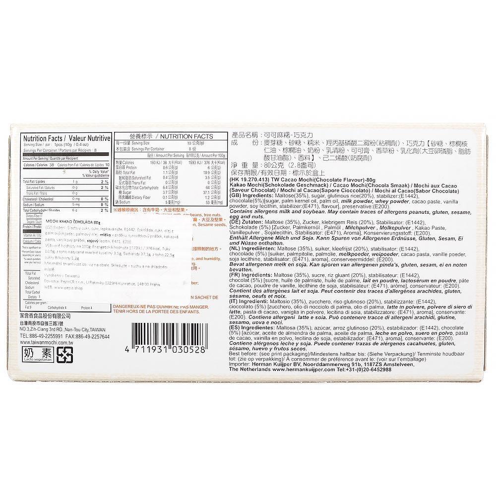Mochi Cacao – Q Brand Csokoládé összetevők:
