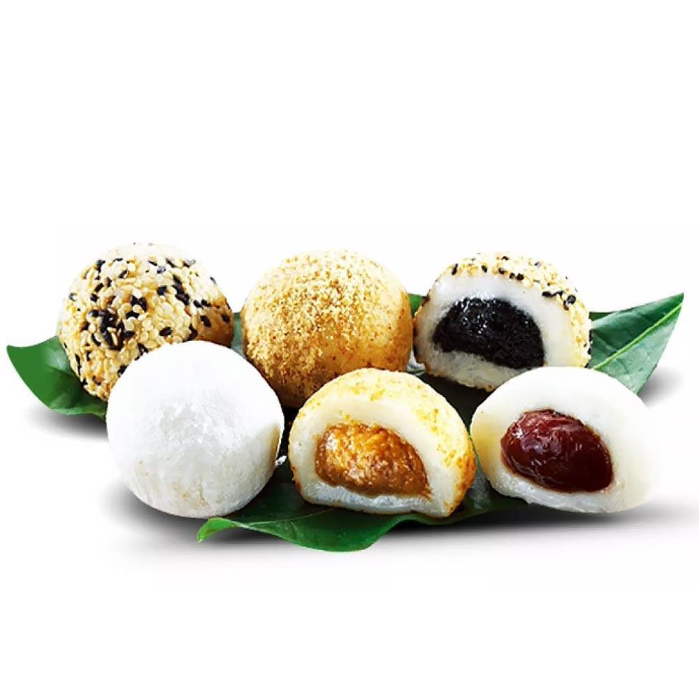 Ez a japán vegyes Mochi Válogatás 15 darab extra mochit tartalmaz a 3 népszerű ízekből válogatva. Szezámmagos, földimogyorós, és édes azuki vörösbabos.