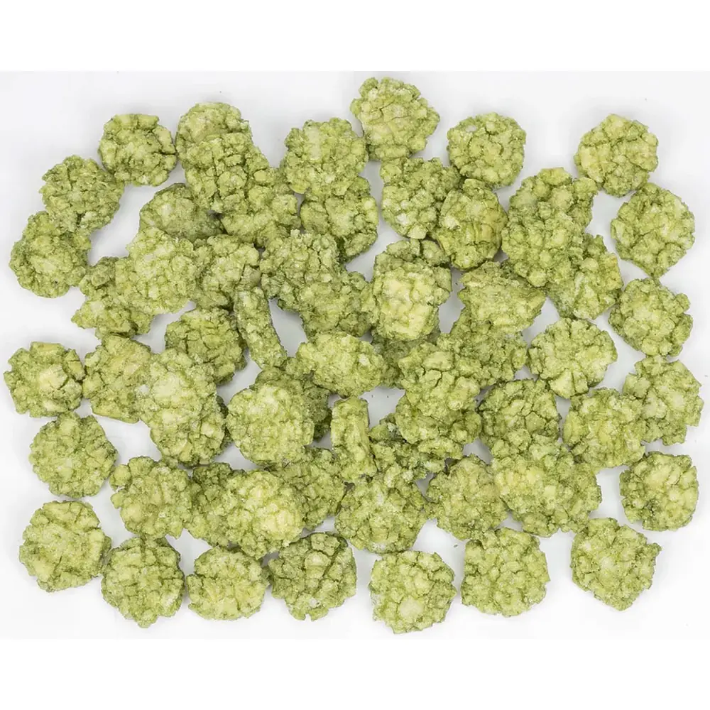 Rizs 51%, pálmaolaj, Szójaszósz (Szójabab, búza, só), cukor, wasabi ízesítő 2.9% (ízfokozók: E621, E635, halpor, cukor, só, keményített növényi fehérje, mustárolaj, dextrin), tápiókakeményítő, színezékek E160a (ii), E141.